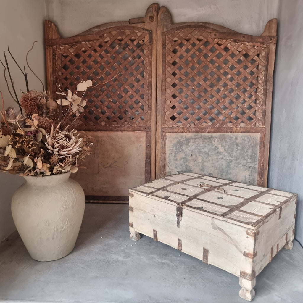 The Indian Storage Trunk Timber Chest from the Eco Village Collection combines vintage charm with eco-friendly design. This distinctive handcrafted chest delivers ample storage space, helping you keep your belongings neatly arranged while adding a touch of authentic style to your living space.