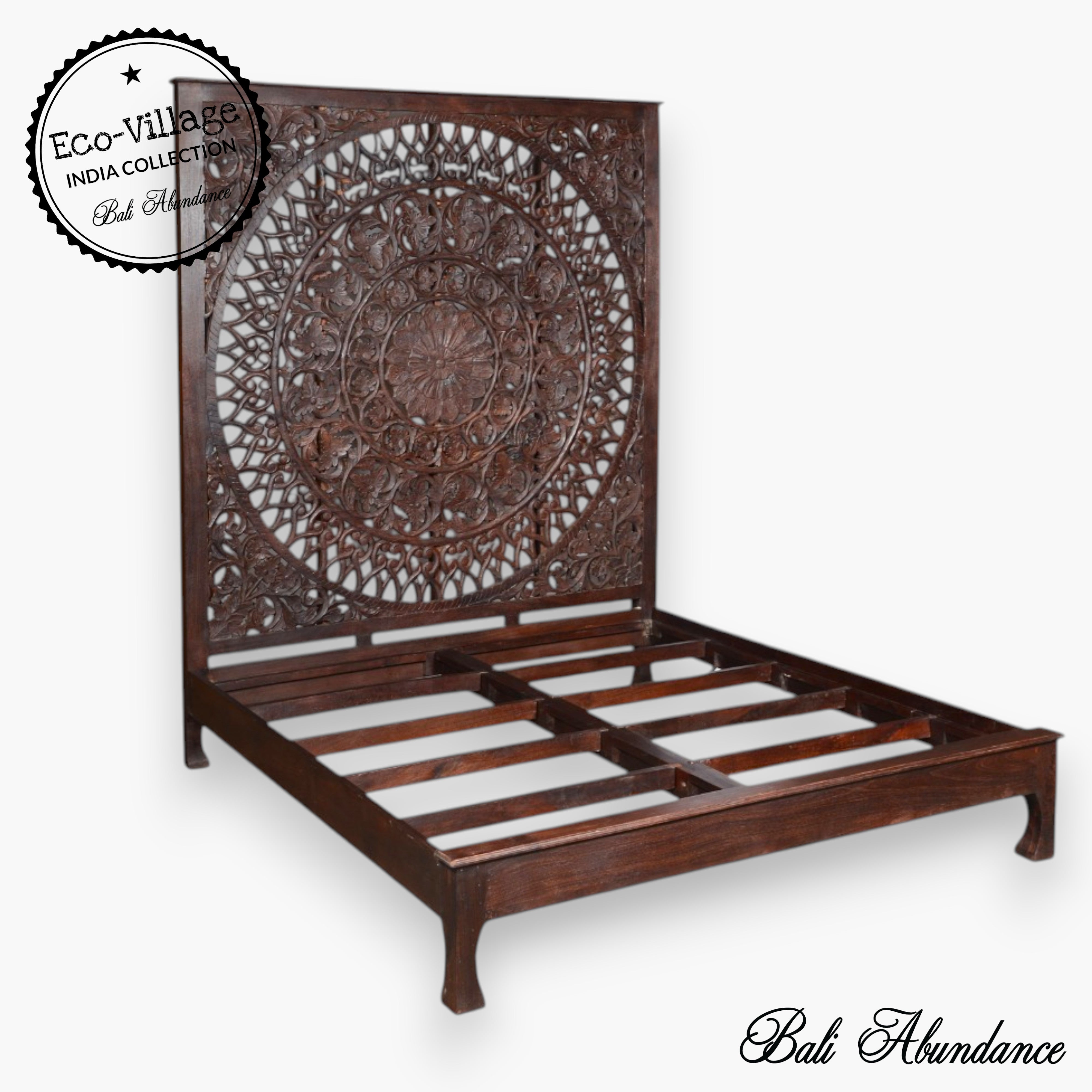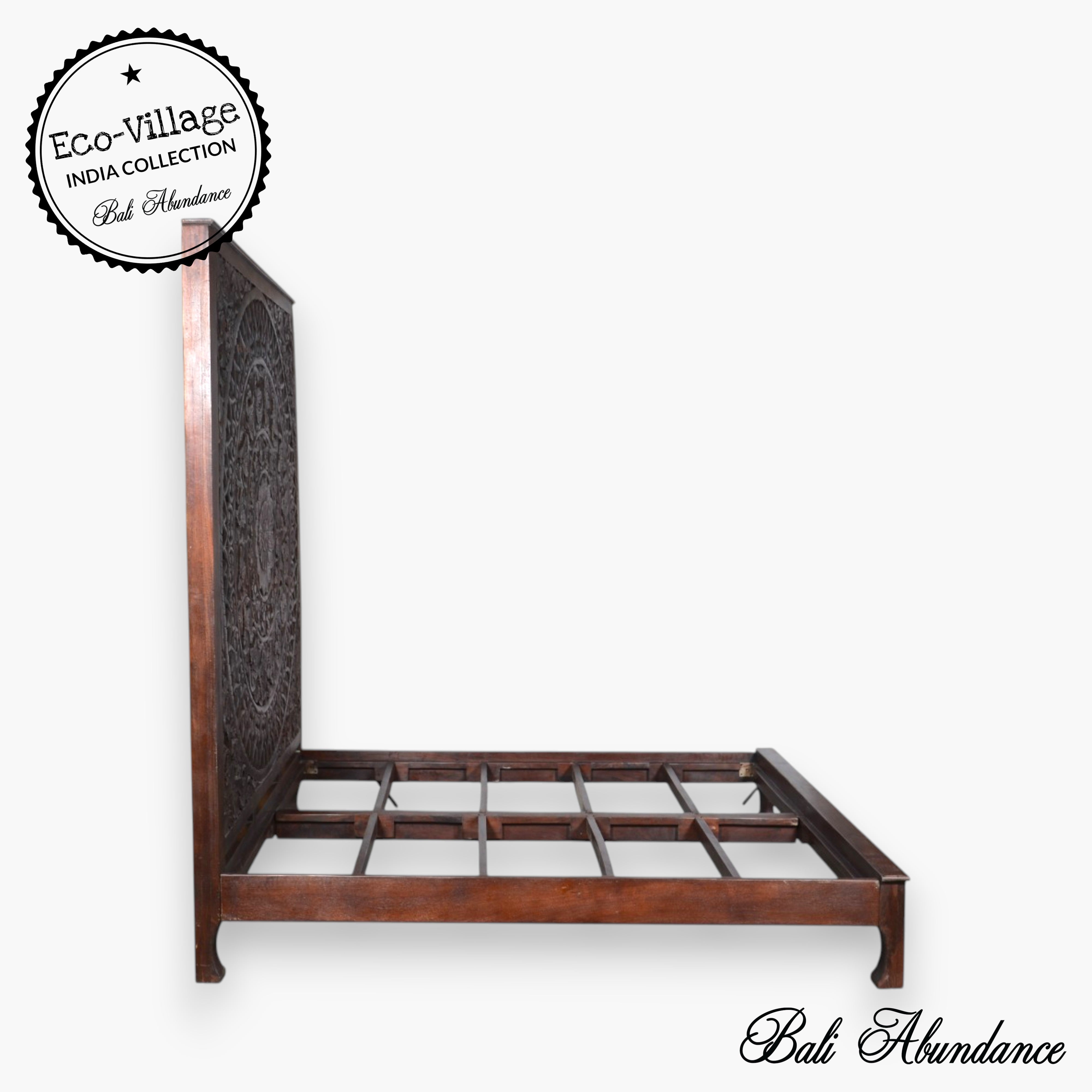 * AMARA Mandala Mango Wood Hand Carved Panel Bed Walnut - Eco Village Collection