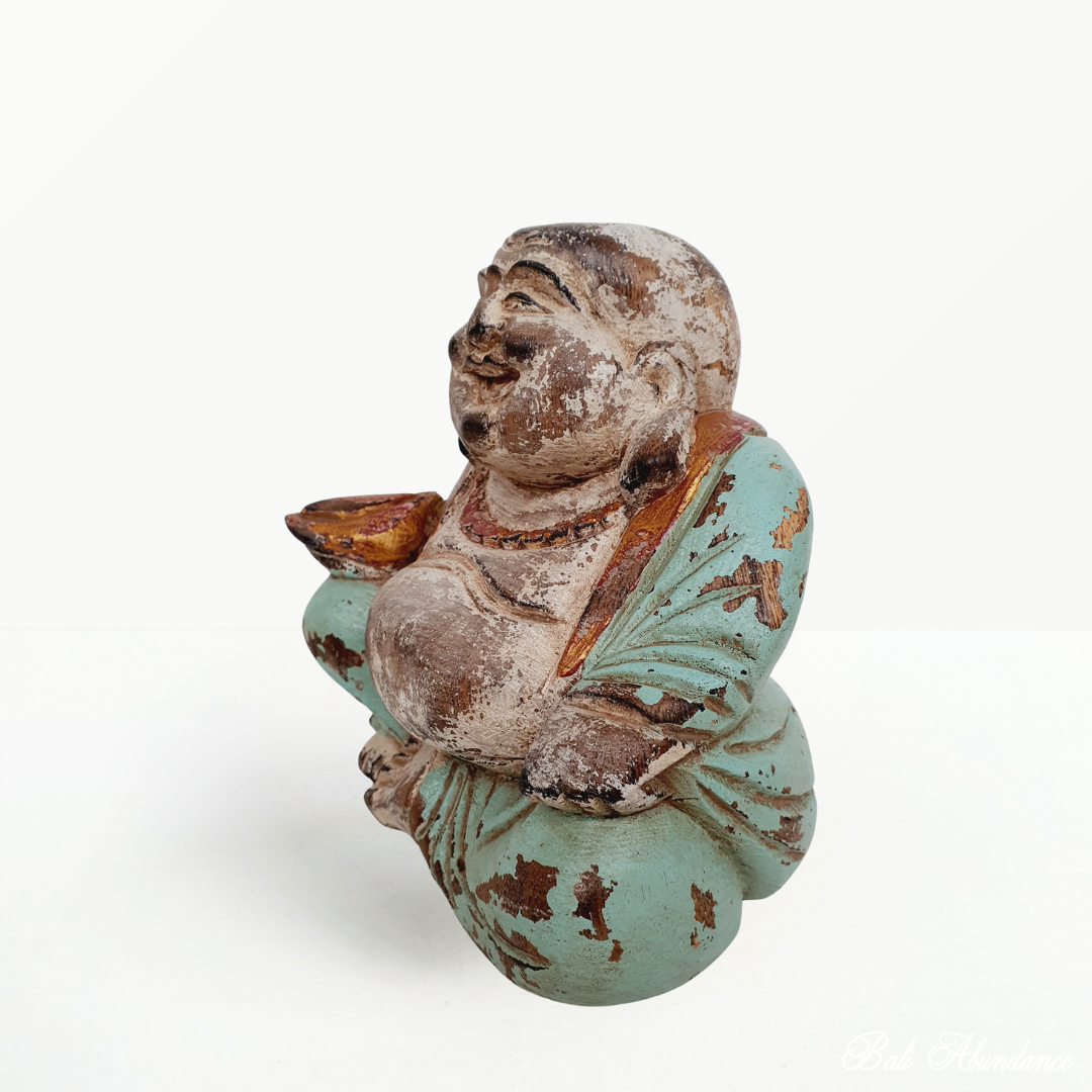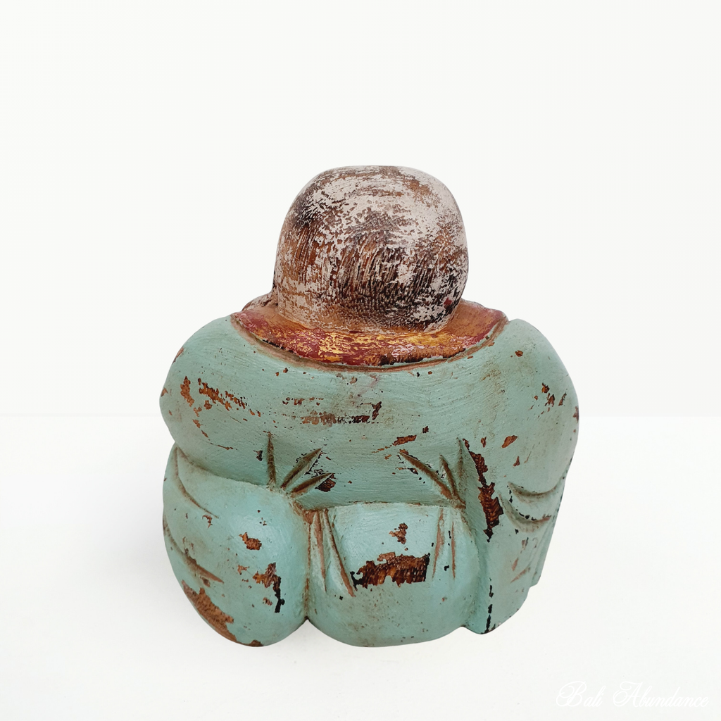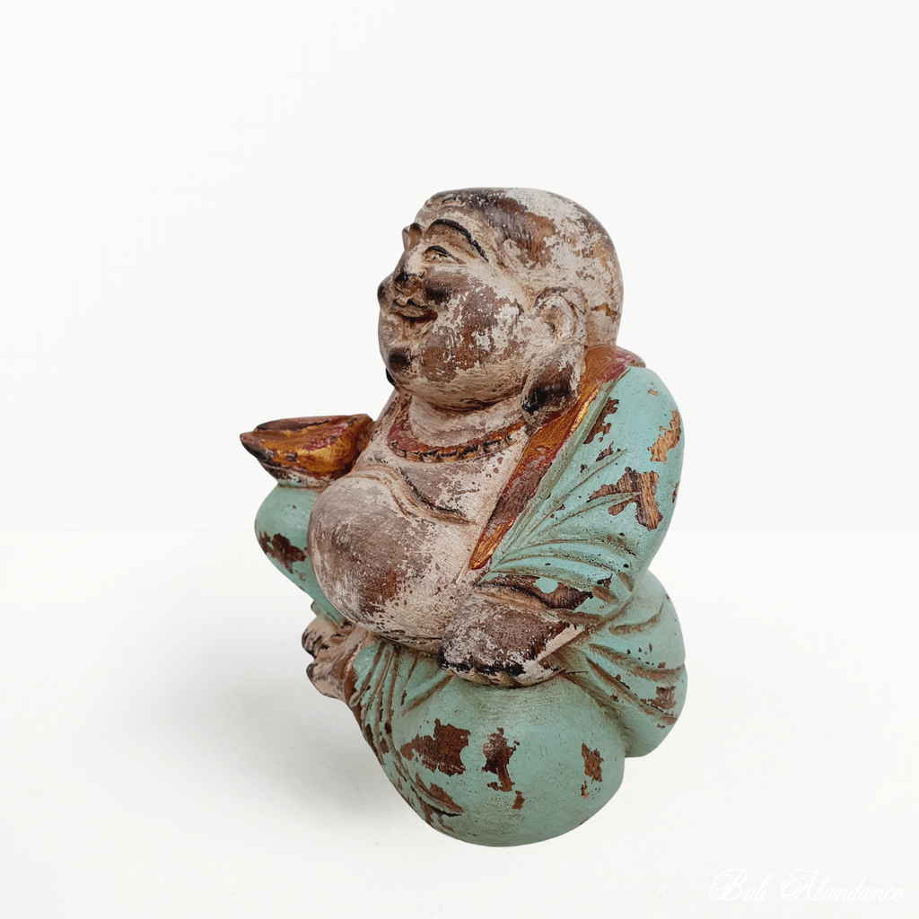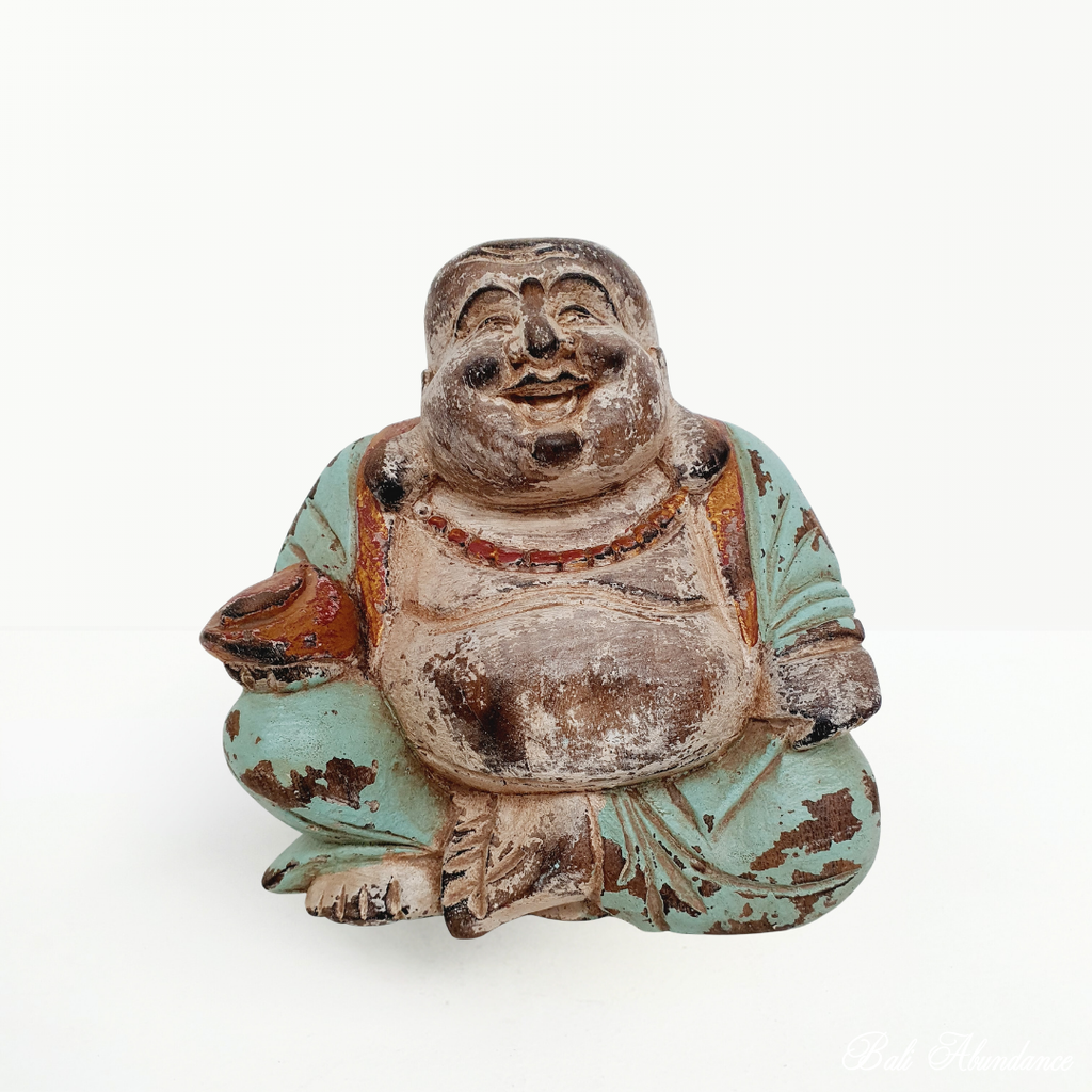 Artisan-crafted seated Buddha figure from Bali, meticulously carved by hand to capture the joyful essence of this beloved spiritual symbol. Each piece reflects traditional Balinese craftsmanship, bringing warmth and positive energy to your space. A timeless addition to any home or meditation sanctuary.