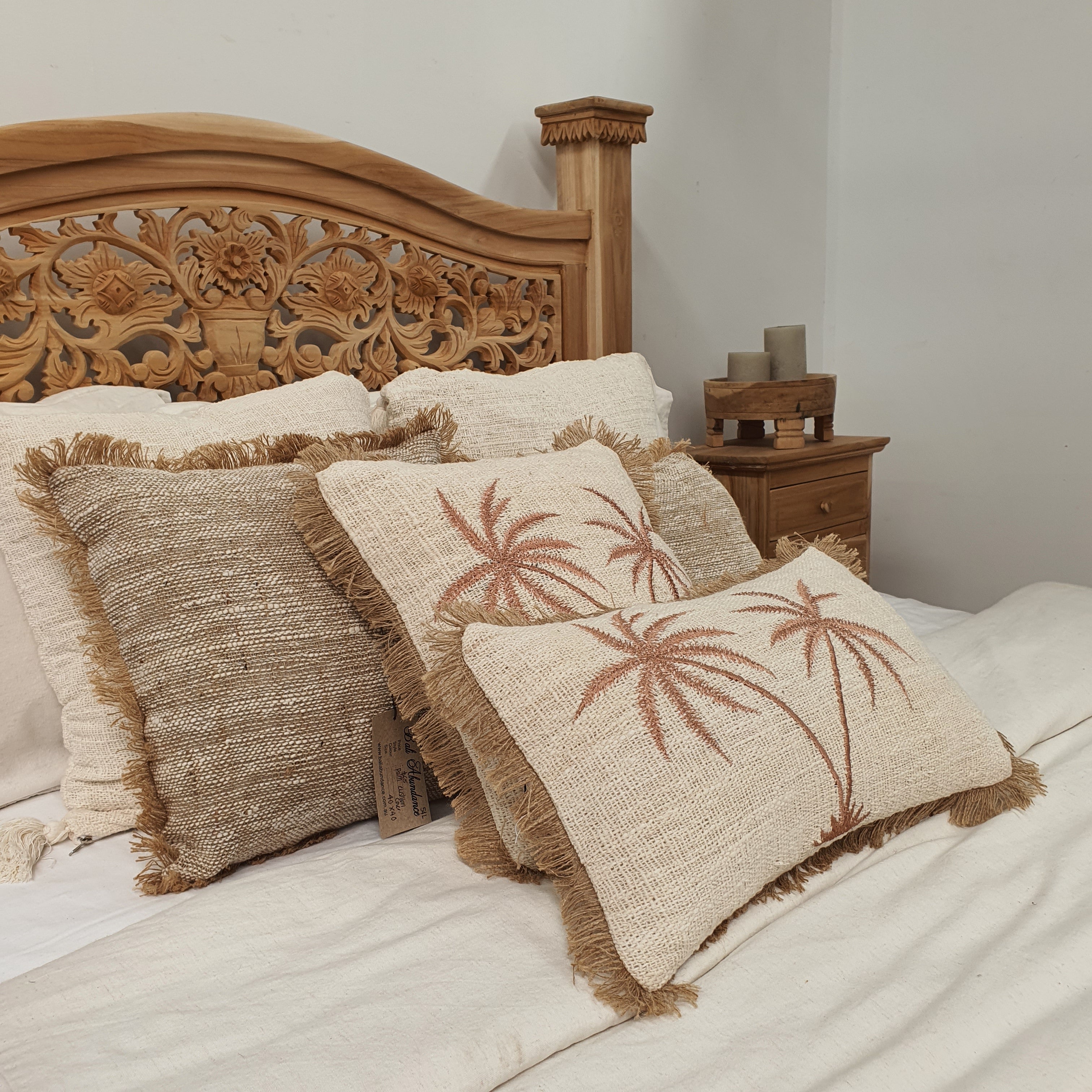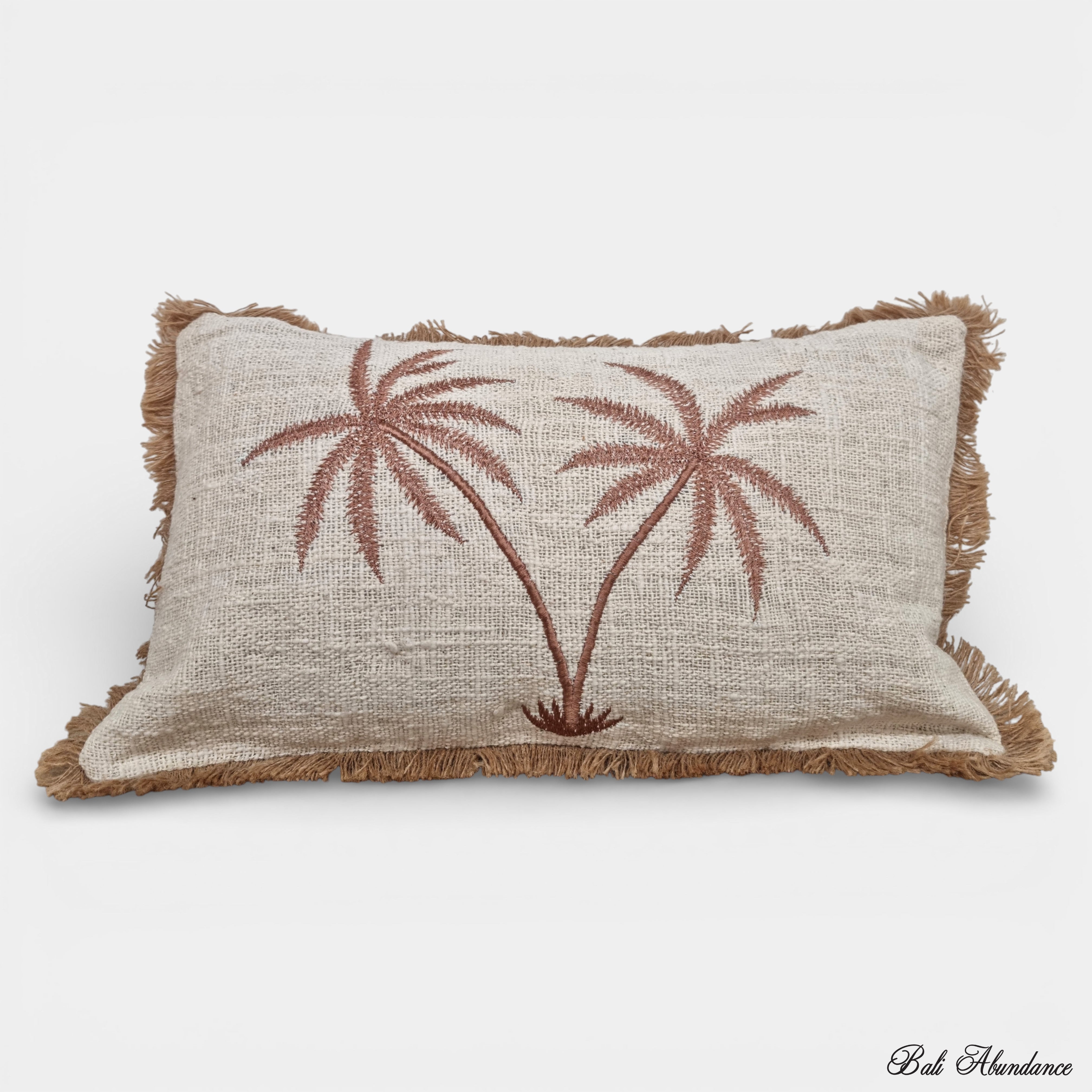 Transform your interior with the understated elegance of our palm tree oblong cotton cushion cover. Woven from premium natural cotton with a beautiful textured finish, this piece channels authentic Balinese design through its organic simplicity. The soft, neutral tones create a serene island-inspired atmosphere that complements any room aesthetic. Whether placed on your bed, sofa, or favourite chair, this versatile cushion cover brings warmth and dimension to your space. Layer it with other cushions to craft a cohesive, globally-conscious retreat that radiates calm sophistication and timeless style.