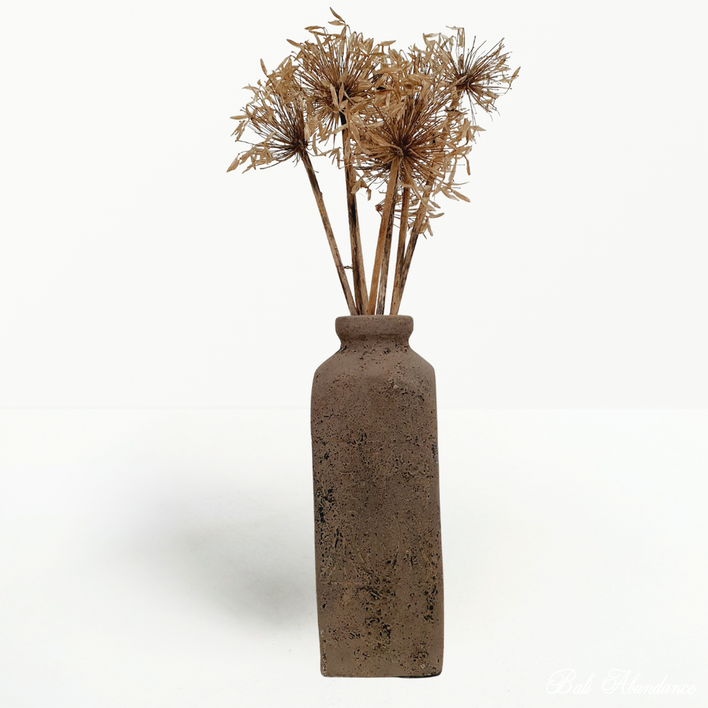 Transform your space with the warm, earthy charm of this clay terracotta pot. Perfect for displaying your favourite dried foliage indoors or creating a serene garden sanctuary outdoors, this timeless piece brings natural elegance and a touch of Balinese tranquility to any environment. Its classic terracotta finish complements both contemporary and traditional décor, making it an effortless way to infuse your home with organic beauty and peaceful sophistication.