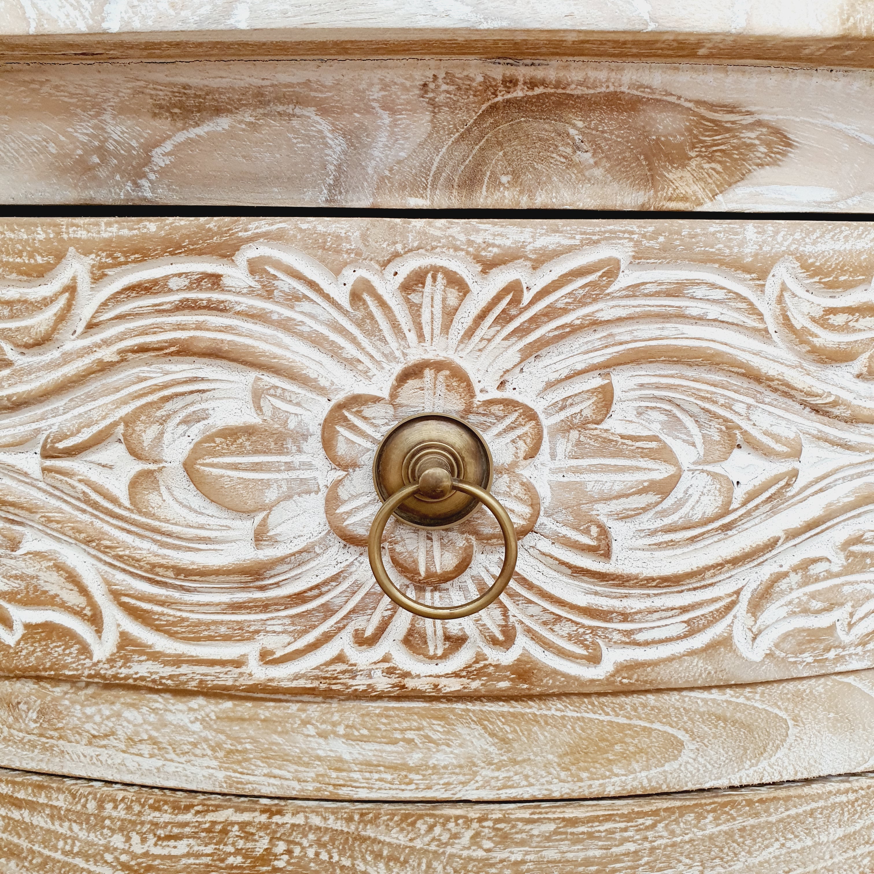• Intricately carved top drawers