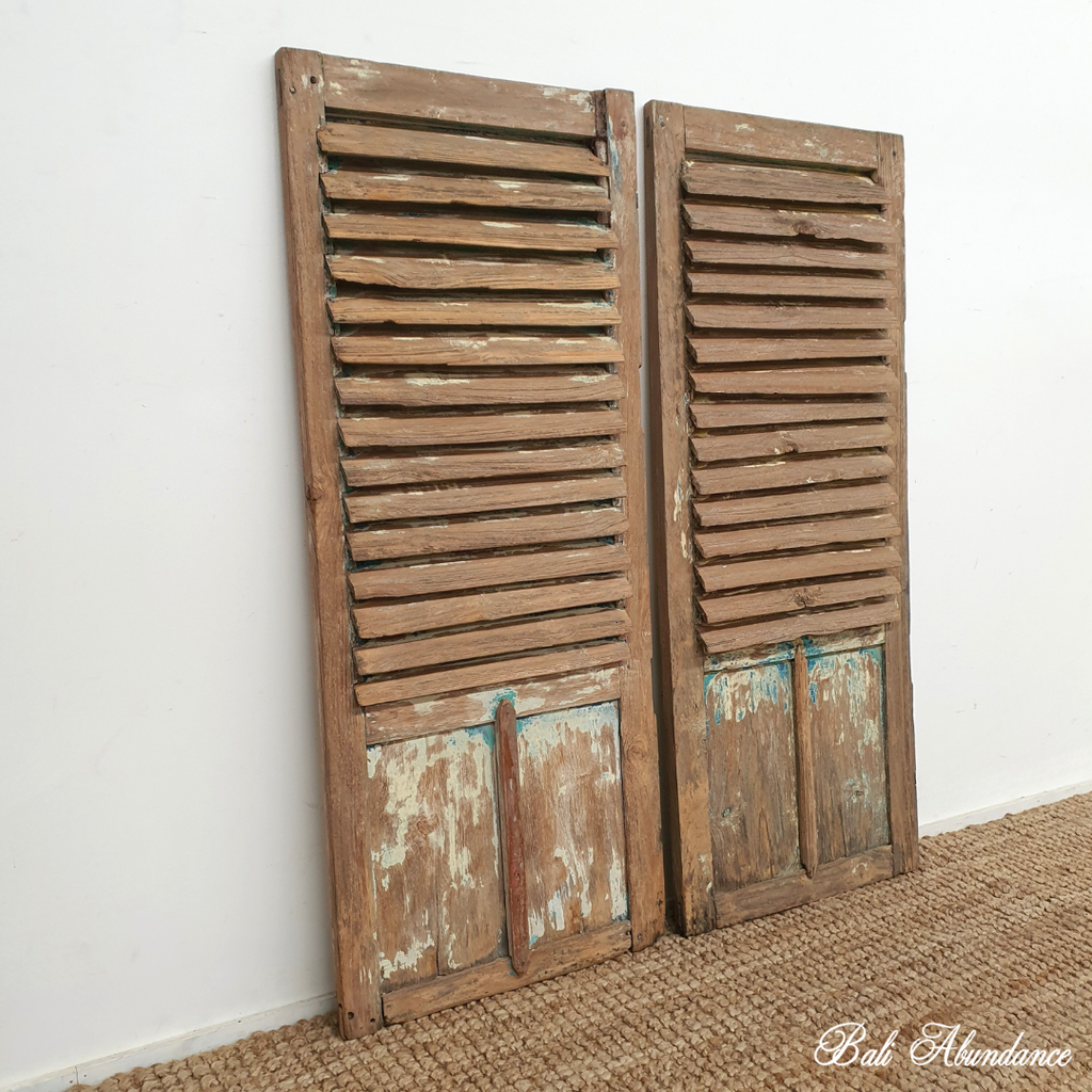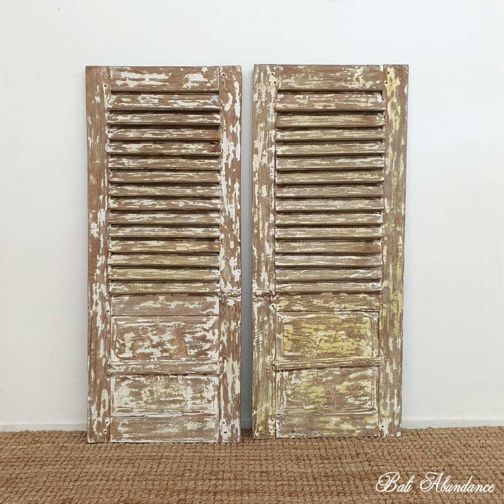 Vintage shutters often feature traditional designs that vary based on regional influences and historical periods. They may include decorative louvers (horizontal slats), panels, or combination designs that enhance both aesthetics and functionality. Shutters serve both practical and decorative purposes. They can be adjusted to control light, airflow, and privacy within a space. When closed, they offer protection against inclement weather and enhance security.