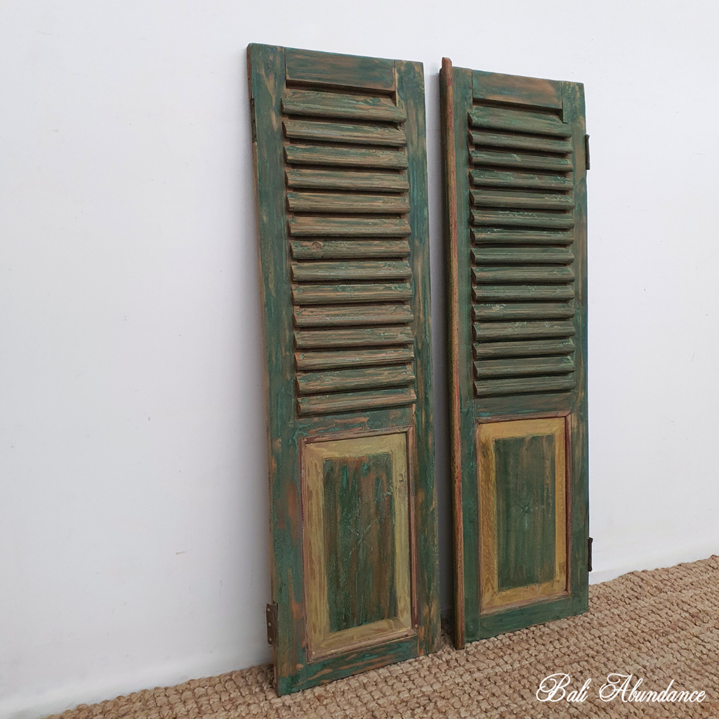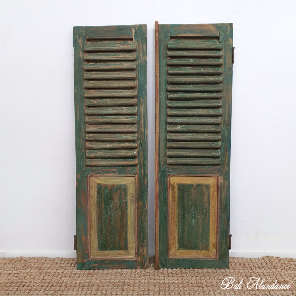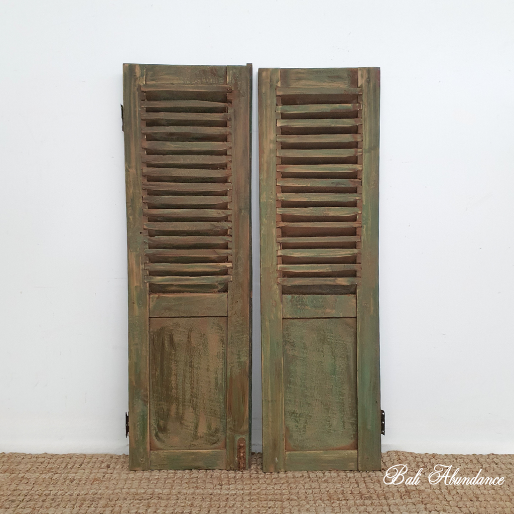 VINTAGE Balinese Dark Green Louvre Window Shutter Pair