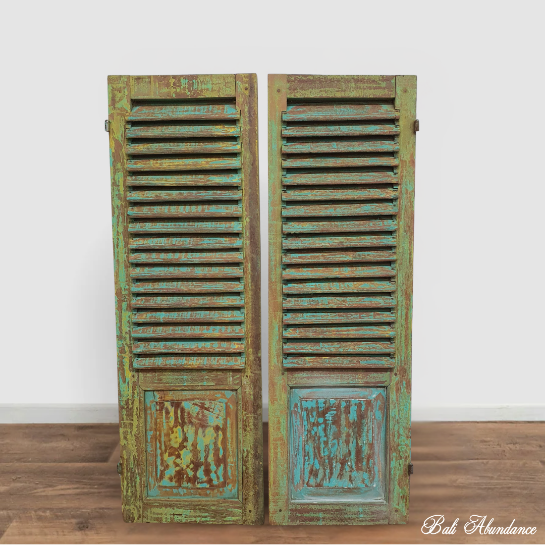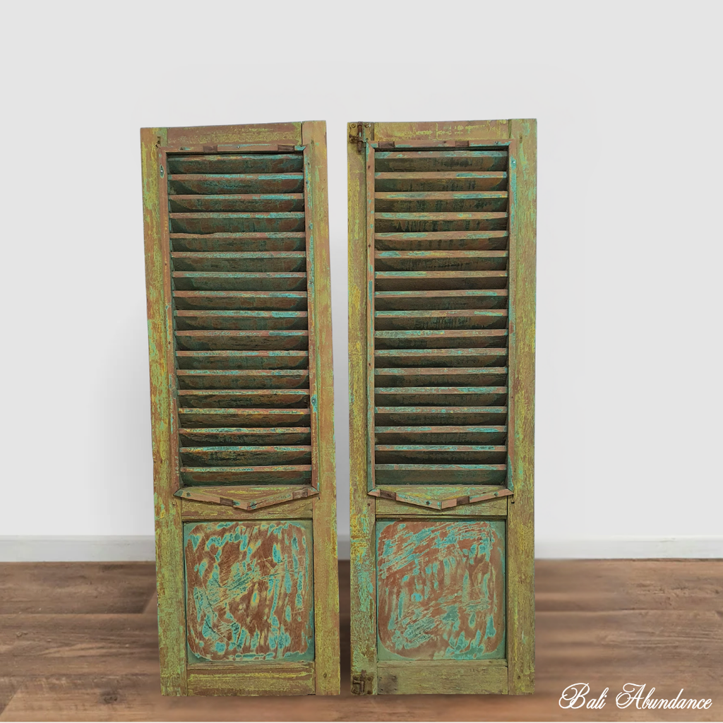 Elevate your interior with this pair of vintage Balinese louvre window shutters, authentic relics that bridge functional design and artistic expression. These shutters showcase the meticulous craftsmanship of traditional Balinese artisans, featuring precisely carved louvre slats that speak to an era of quality construction and enduring style. Originally designed to filter tropical light and air, they've evolved into coveted vintage pieces that serve as striking architectural focal points. Display them as statement wall art, lean them against a feature wall, or incorporate them into a curated gallery arrangement—their versatility and character work beautifully across eclectic, vintage, and globally-inspired interiors. Each pair carries the patina of time and the soul of handmade heritage, offering collectors and design enthusiasts a tangible connection to Balinese culture. These are not mere decorative objects; they're historical artifacts that infuse spaces with authenticity, depth, and the refined elegance only genuine vintage pieces can provide.