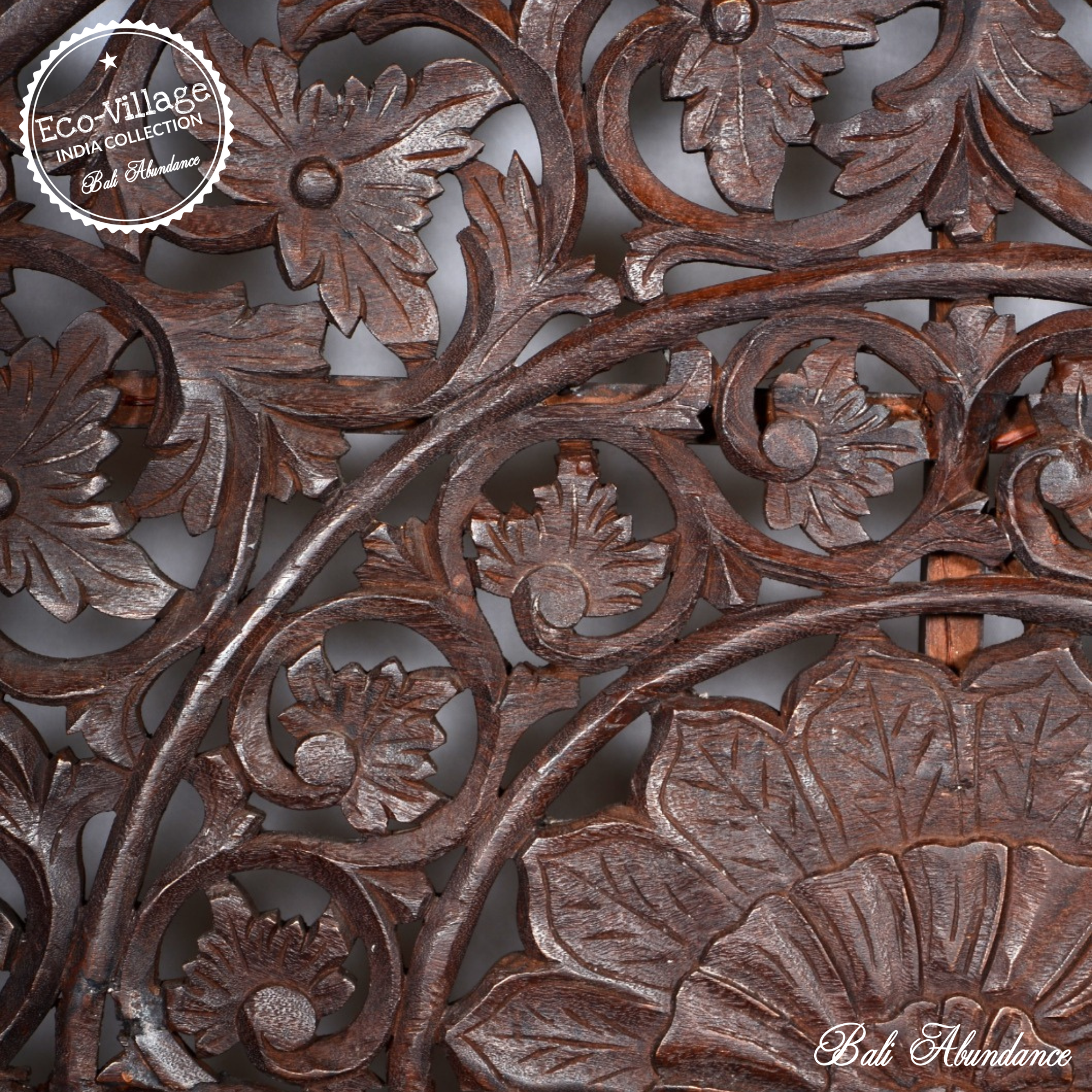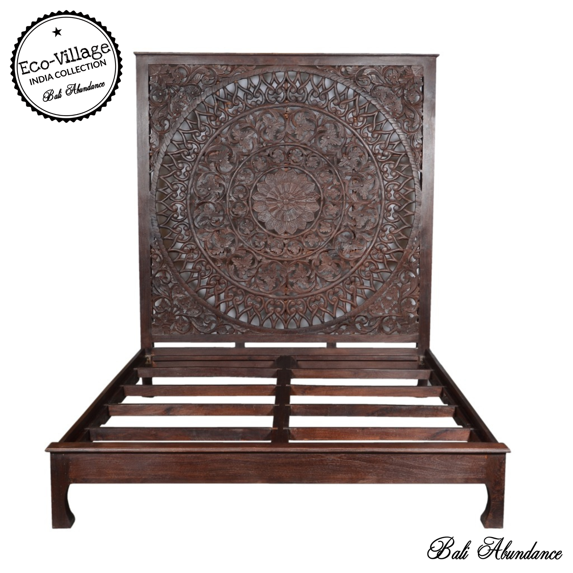 * AMARA Mandala Mango Wood Hand Carved Panel Bed Walnut - Eco Village Collection