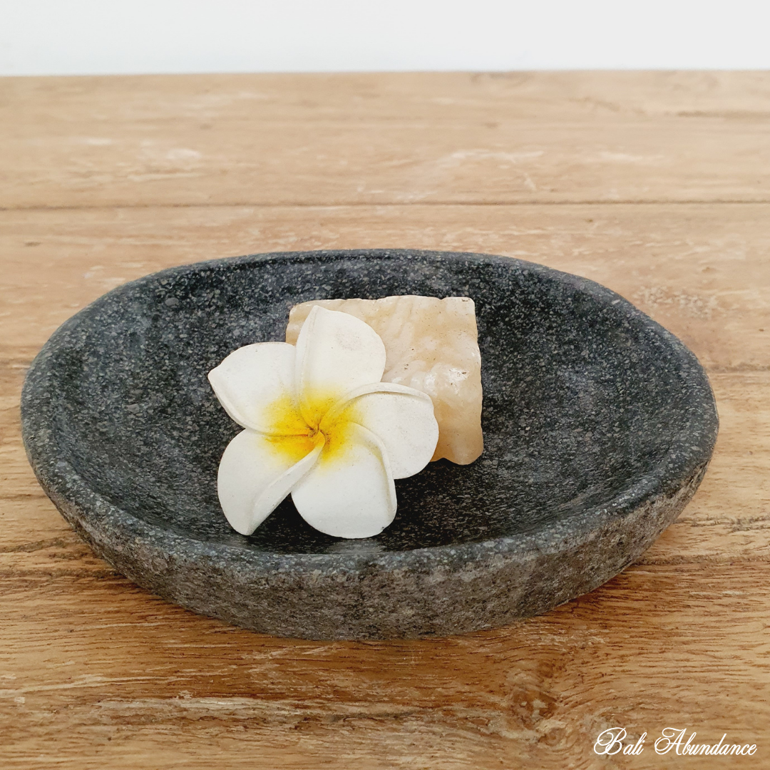 Indulge in luxury with our stunning grey natural stone soap dish, expertly crafted by hand in Bali. Enhance your bathing experience and elevate your home decor with this exquisite piece.