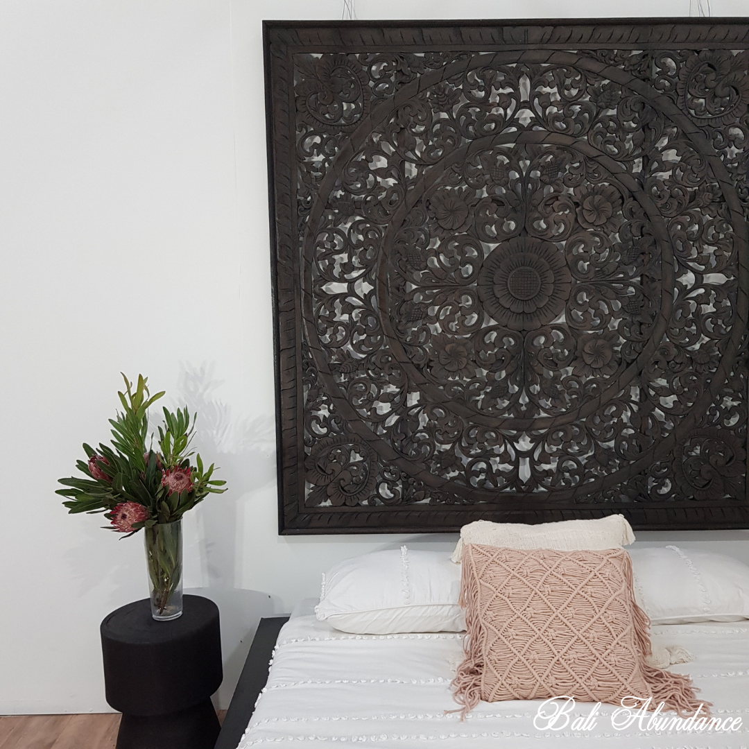 Give your bedroom a regal makeover with this exquisitely hand carved panel. Constructed from dark brown wood, this gorgeous 165 X 165 wall panel offers a luxuriously understated look. Elegance and sophistication have a new name! Wowzah!