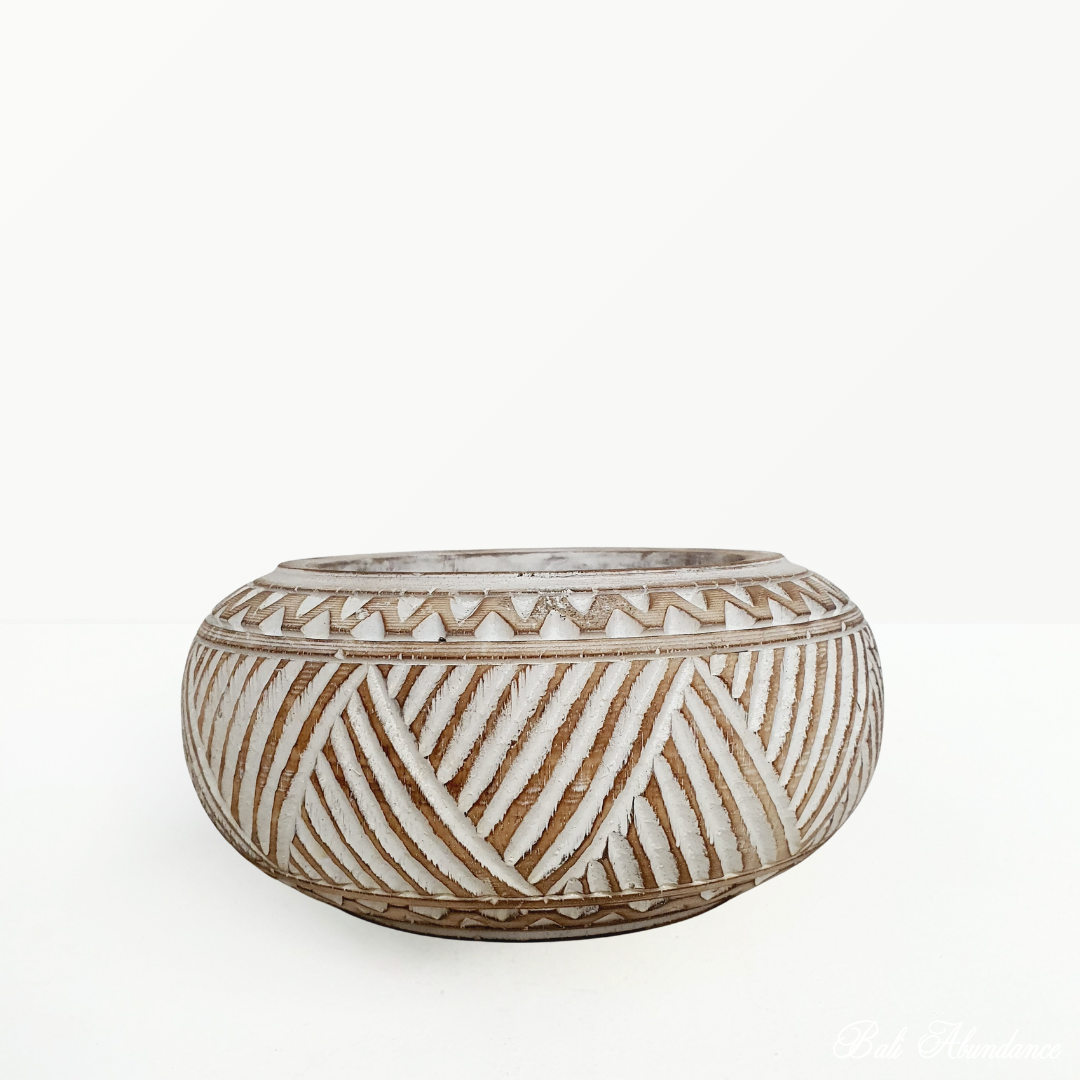 Discover the artisanal beauty of our Hand carved Timor bowl, a stunning piece that brings authentic Balinese craftsmanship into your home. Each bowl is meticulously hand carved by skilled artisans, featuring intricate traditional patterns and designs rendered in a warm, earthy brownwash finish. The natural variations in wood grain and carving depth create a one-of-a-kind aesthetic that celebrates the organic nature of handmade artistry. Perfect for serving, display, or as a meaningful decorative accent, this timeless bowl embodies the rich cultural heritage of Timor. Whether you're seeking to elevate your table setting or add a touch of bohemian elegance to your space, this exquisite piece serves as a conversation starter and a testament to sustainable, artisanal craftsmanship.