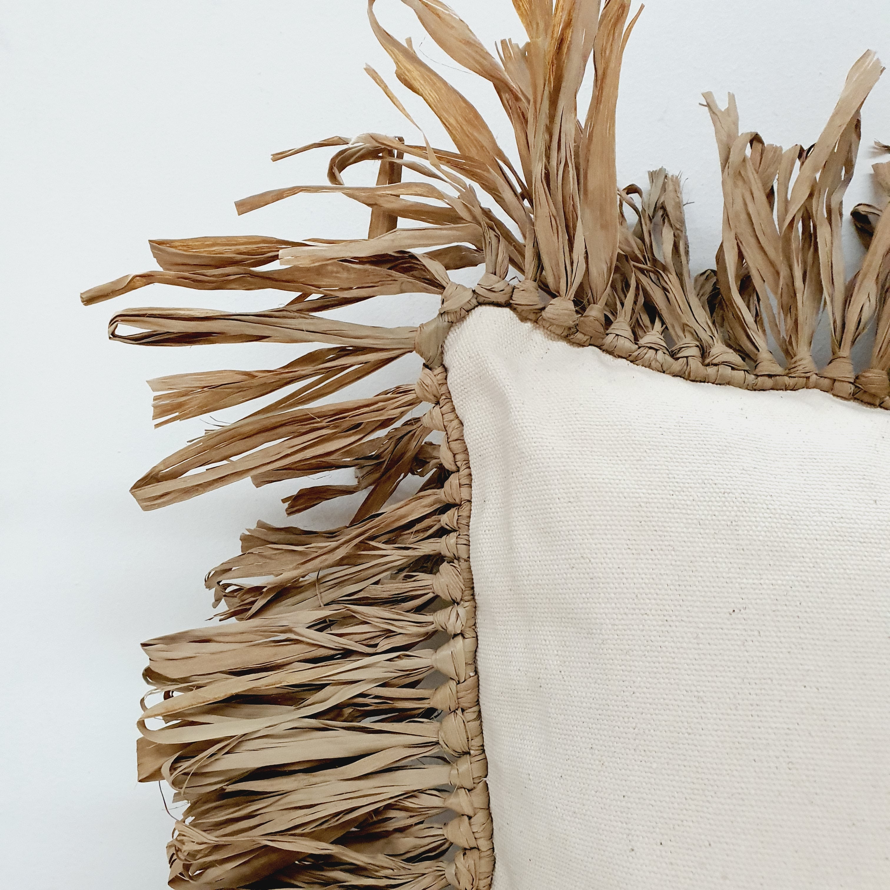 Add a touch of bohemian Bali to your lounge or bed with our natural cotton and raffia fringe cushion covers.