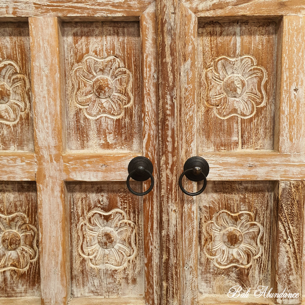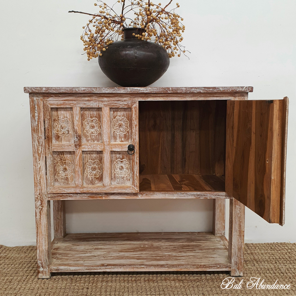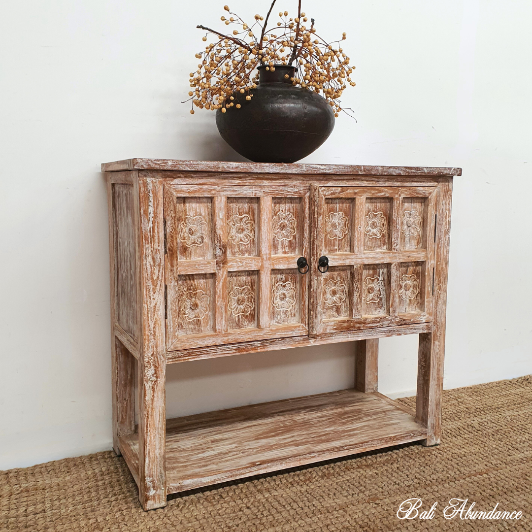 Melati Floral Carved 2 Door Teak Console - Jati Wash