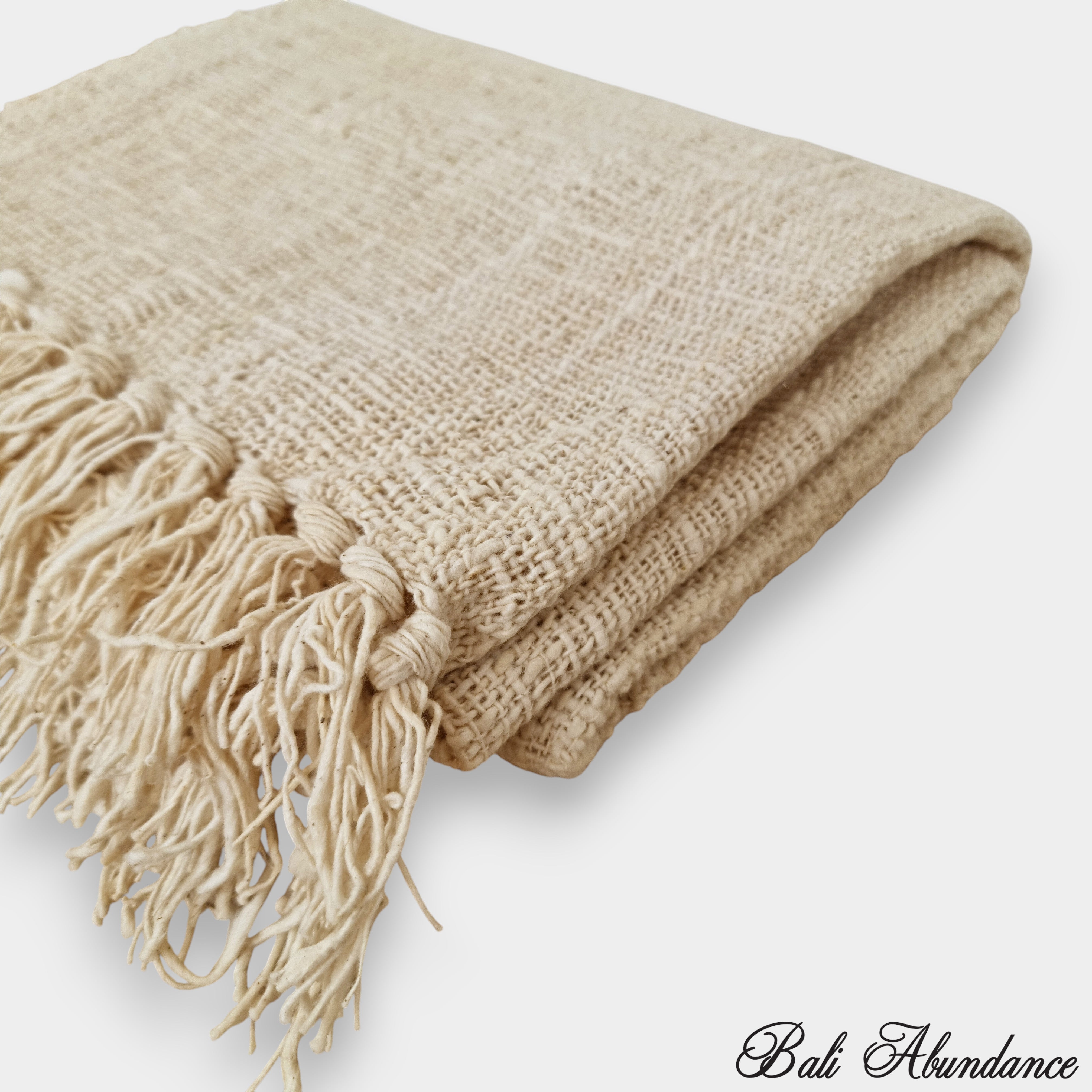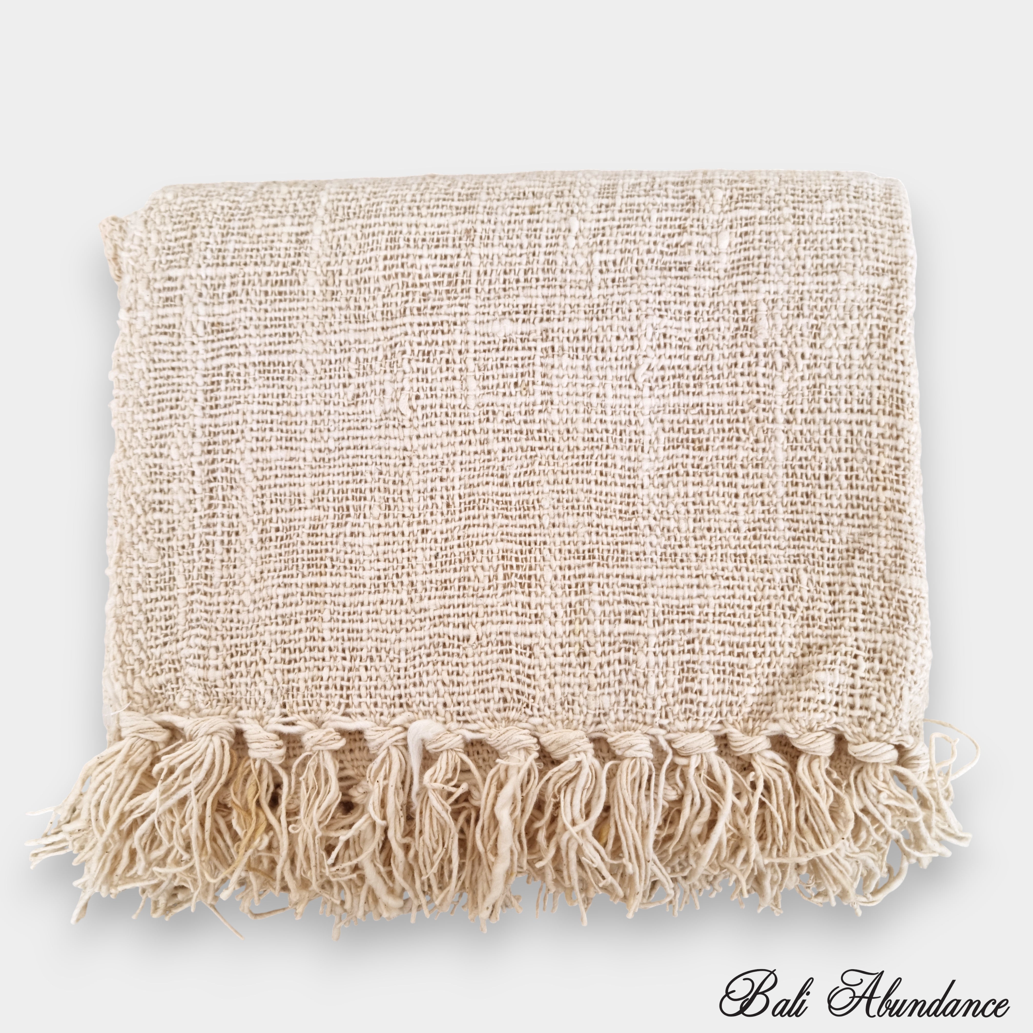 Natural Cotton Table or Bed Runner with Tassels