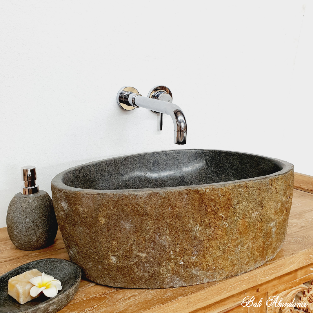 This Natural River Stone Bathroom Basin is handmade from Balinese riverstone for an elegant and natural look. The irregular shape ensures a unique finished product that stands out in any bathroom. Crafted with durability and strength, this basin will last a lifetime.