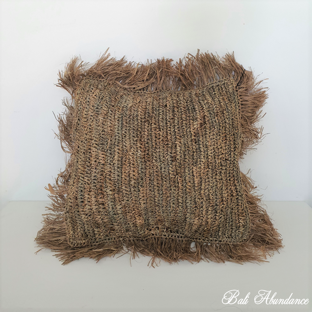Raffia Large Cushion Cover with Dark Fringe - HALF PRICE!