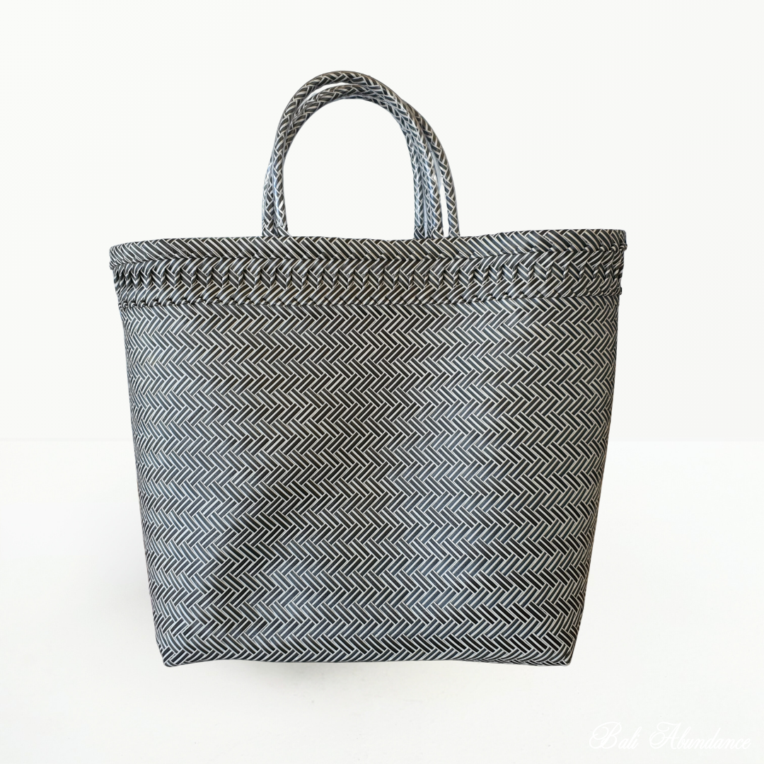 Our recycled plastic market basket bag will make you the envy of every shopper as you stroll down the street. The colourful weave is sustainable and lightweight, providing both functionality for all your needs. This bag is strong and durable for shopping trips.