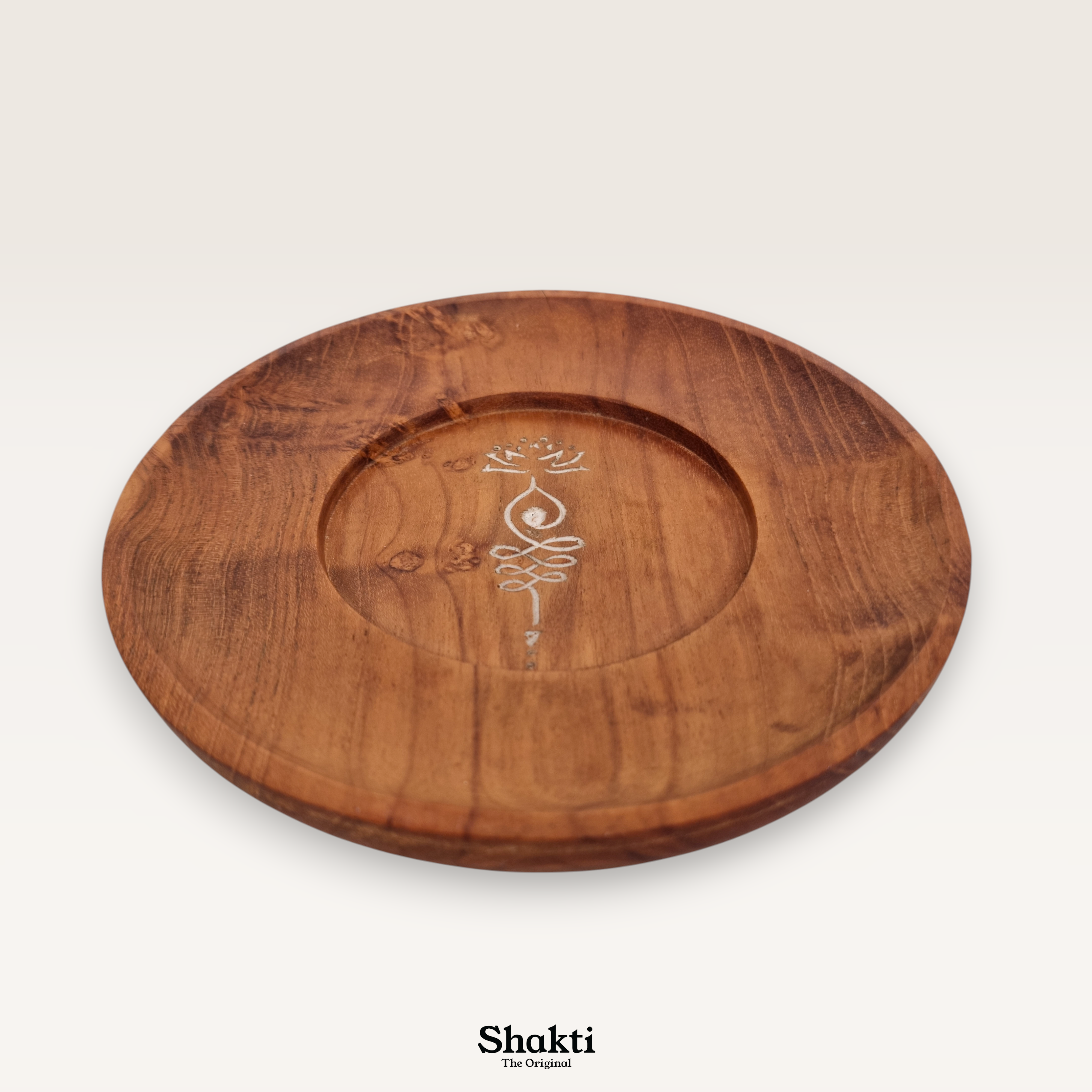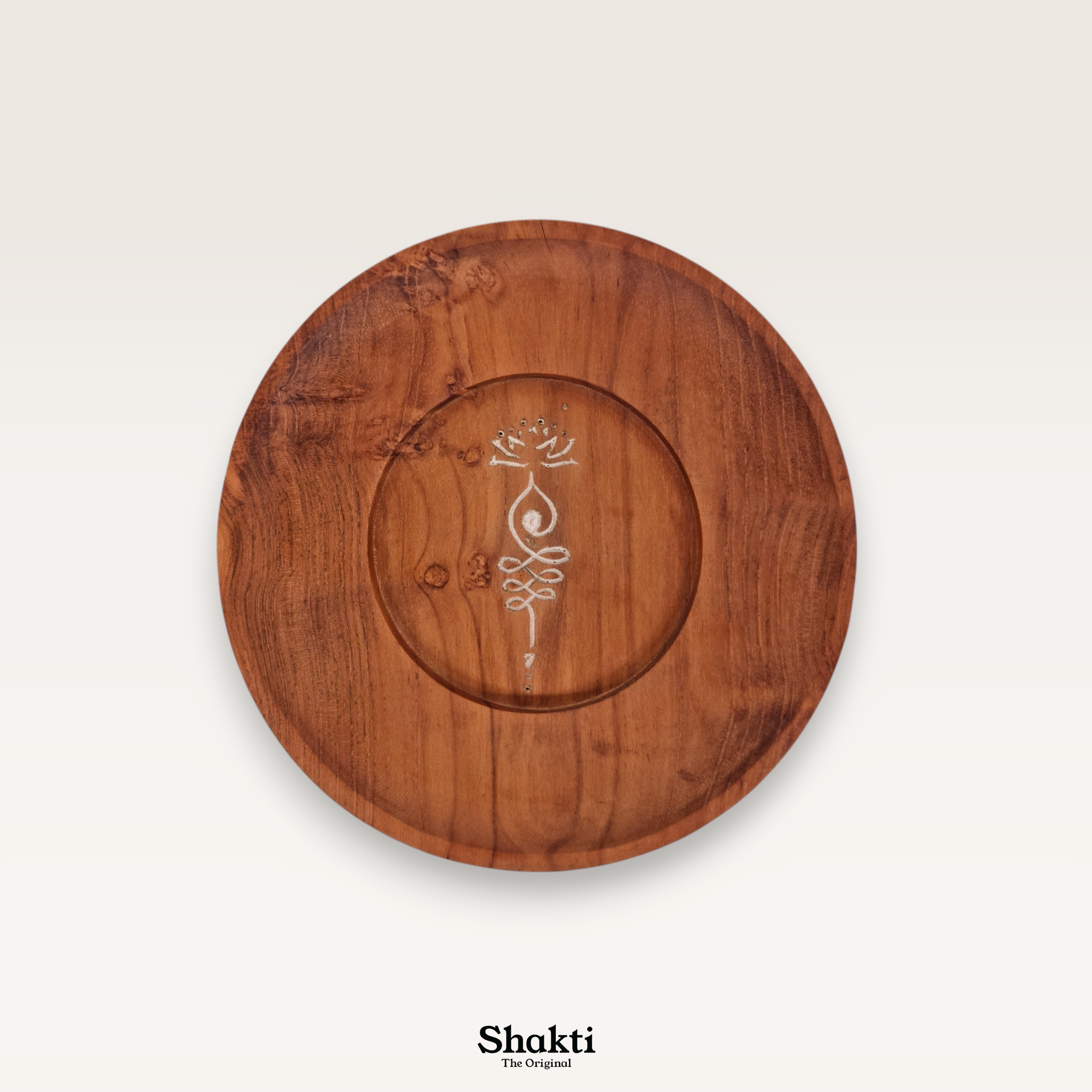 Elevate your sacred space with this beautifully crafted accessory plate, hand-carved from rich, durable teak wood. Its warm tones and unique wood grain make each piece a natural work of art, perfect for grounding your meditation practice.